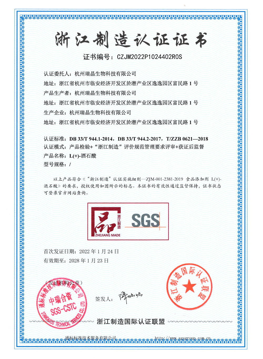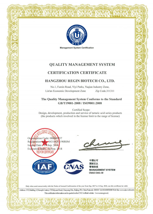 ◆ 2009年参与制订GB25545-2010《食品添加剂 L(+)-酒石酸》食品安全国家标准;